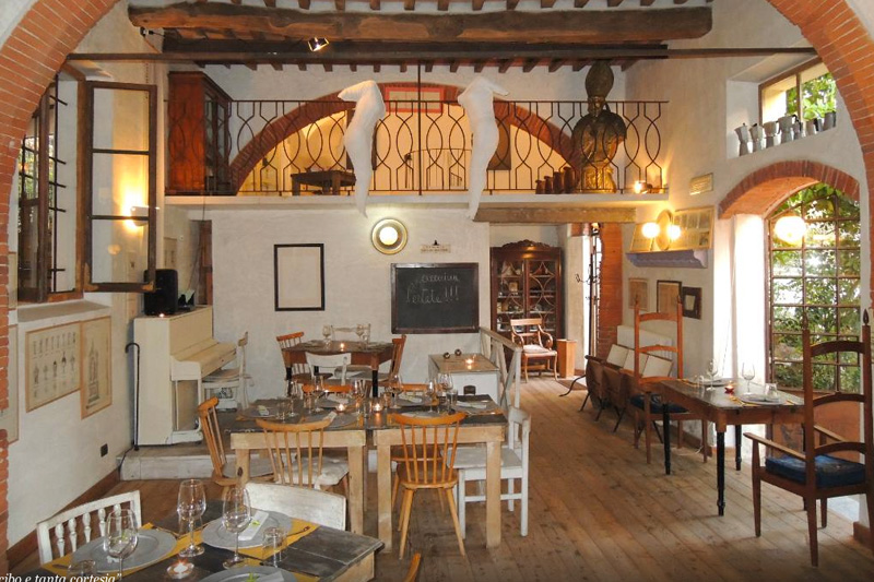 Appena fuori dal centro di Pietrasanta c’è questo strano ristorante, nascostissimo da una strada tortuosa che sembra portare a un magazzino. Invece ecco un piccolo giardinetto con tre tavoli, tavoli da giardino, non da ristorante, però apparecchiati. Una sala interna con il bar crea il corpo centrale della struttura, seguita poi da un porticato sul retro.